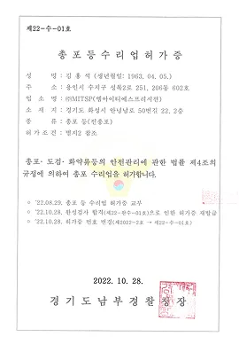 총포 수리업 허가(2022.10.28.)