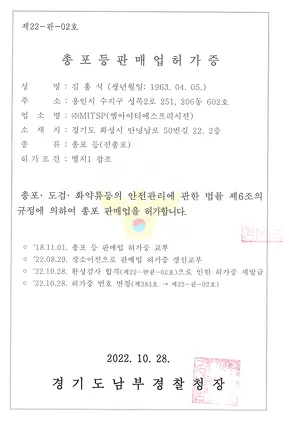 총포 판매업 허가(2022.10.28.)